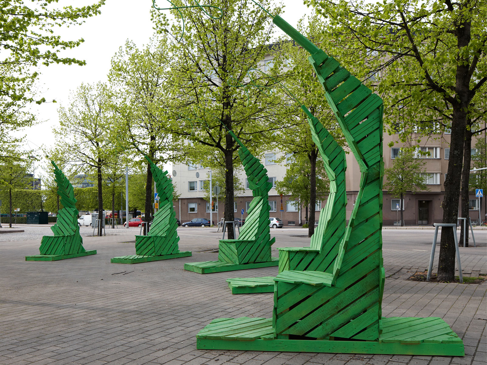 Oon kaupungissa -kaupunkitaidetapahtuma. Helsinki-valtaistuimet olivat koko kesän 2011 Hakaniemenrannassa.