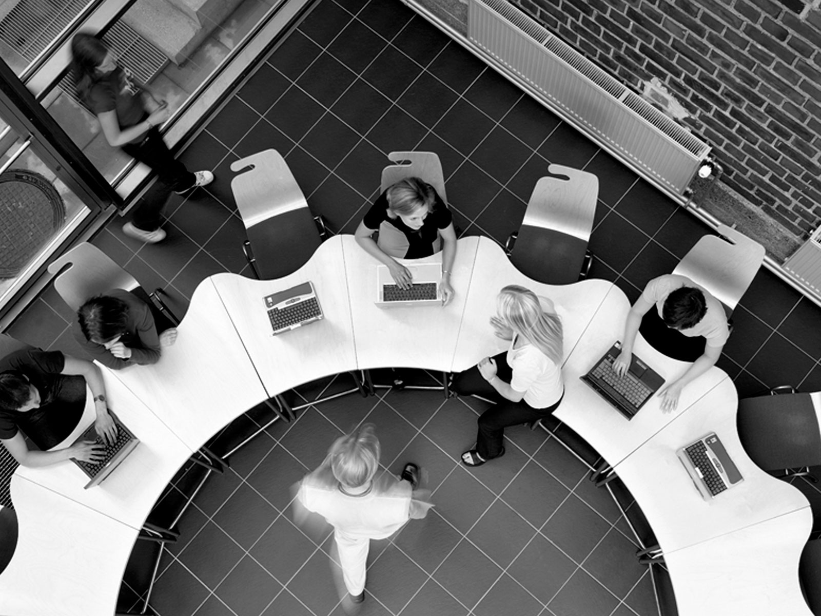 Oppilaspöytä erityisesti läppärityöskentelyyn. Valmistaja Avarte. 1997.